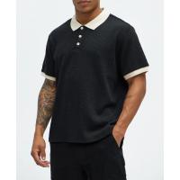 Elevate your casual wardrobe with our Men's Textured Knit Polo Shirt. This relaxed fit sweater polo features a sophisticated jacquard knit pattern, offering a premium, breathable feel perfect for summer and transitional weather. The striking contrast tipped trim on the collar and sleeves adds a retro, yet modern streetwear edge, making it a versatile piece. Pair this black short sleeve collared T-shirt with chinos or cargo pants for an effortlessly stylish look. It's the ultimate blend of the comfort of a knit tee and the polished look of a classic polo.